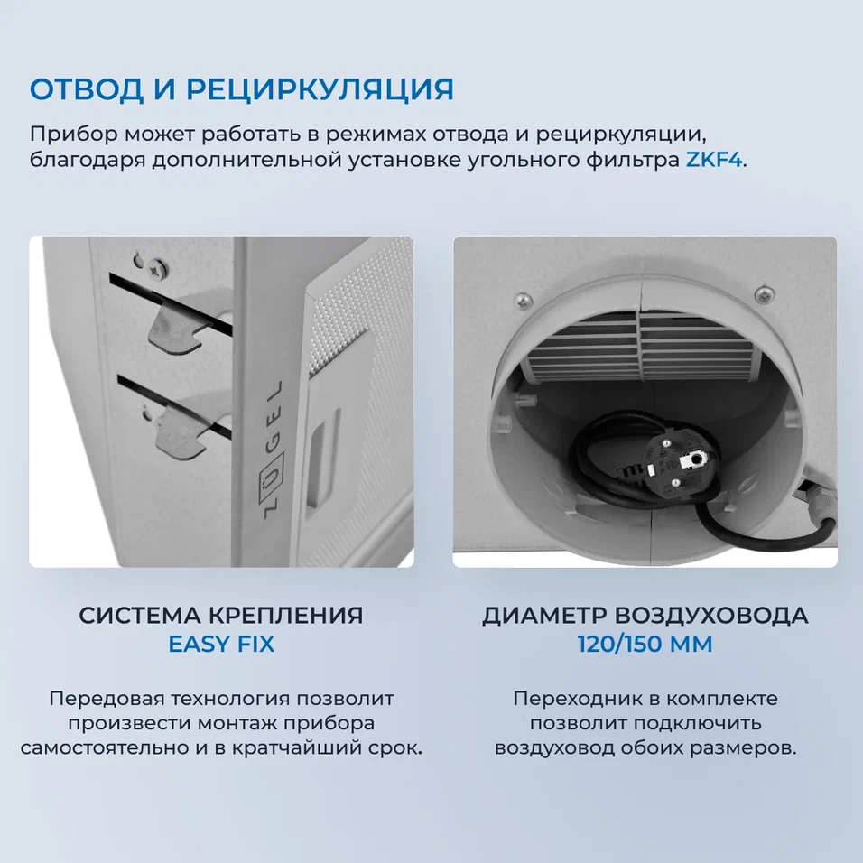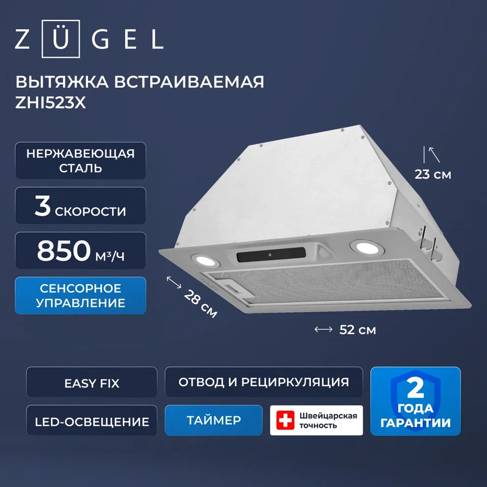 ZUGEL ZHI523X встраиваемая вытяжка для шкафа