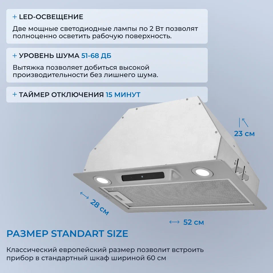 i Большинство вытяжек оснащены лампами, направленными на варочную панель. От типа лампы зависит энергопотребление и особенности освещения.