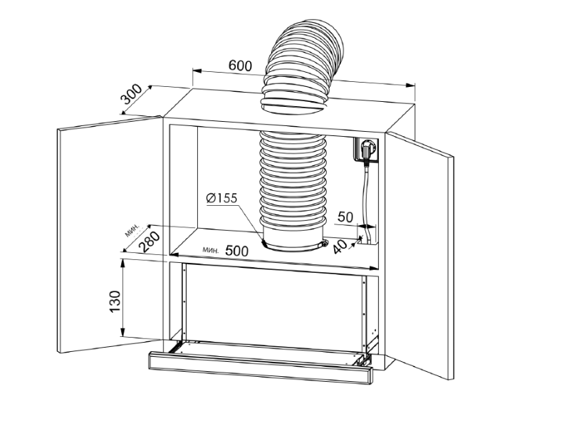 ZUGEL ZHI524GW встраиваемая вытяжка для шкафа