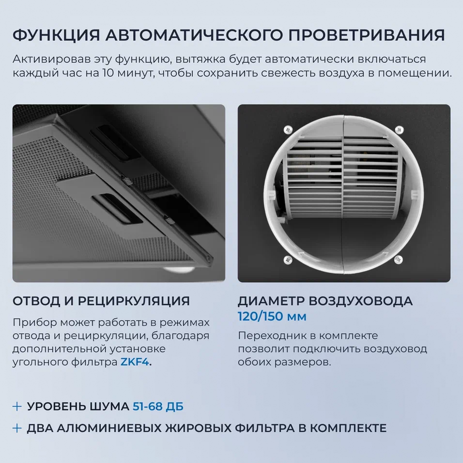 ZUGEL ZHT652GB встраиваемая вытяжка для шкафа