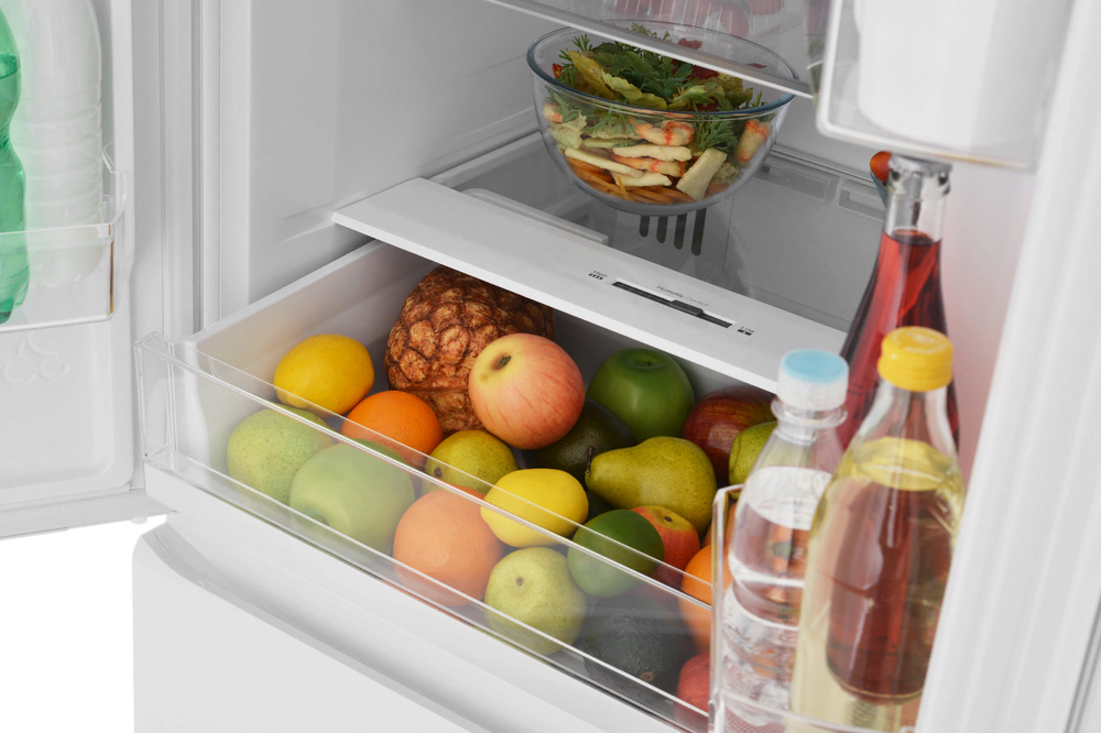 i В зоне свежести температура держится на уровне 0°С, так продукты дольше остаются свежими. Подходит для свежего мяса, рыбы, фруктов, овощей.
