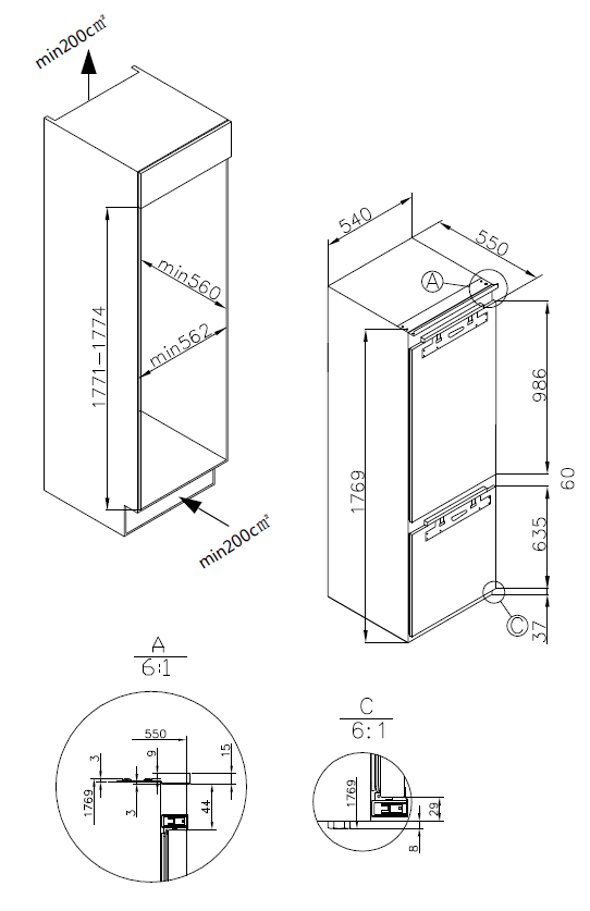 ZUGEL ZRI1760FNF двухкамерный холодильник встраиваемый