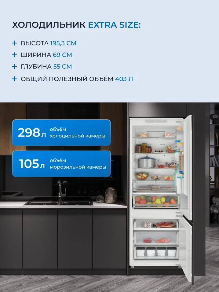 i Общий объем всех отделений морозильной камеры. Для длительного хранения замороженных продуктов выбирайте модели с объемом от 100-150 л.