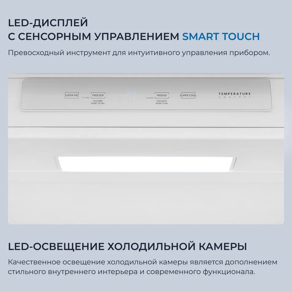 i Морозильная камера может быть расположена сверху, снизу от основной камеры, Side-by-Side. Также она может отсутствовать вовсе.
